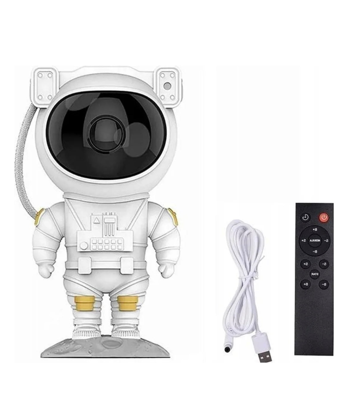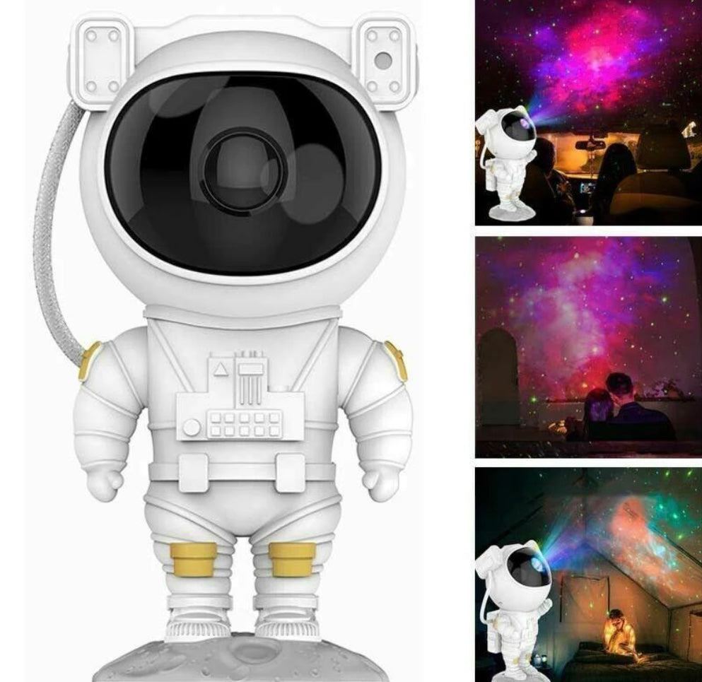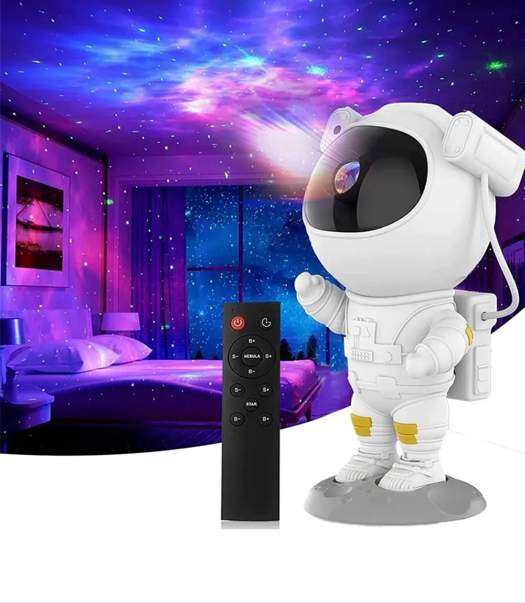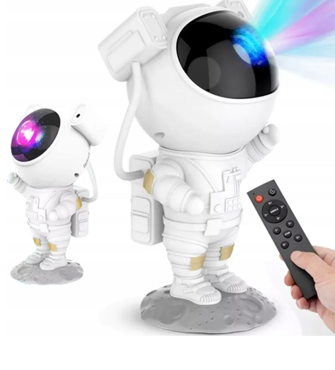 Descoperă proiectorul LED în formă de astronaut, ideal pentru a transforma orice spațiu într-o lume magică de stele și galaxii. Proiectorul nostru îți oferă o experiență captivantă cu ajutorul capului rotativ de 360°, care proiectează pe o suprafață extinsă, aducând un univers întreg în camera ta.