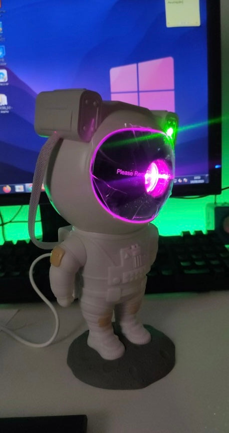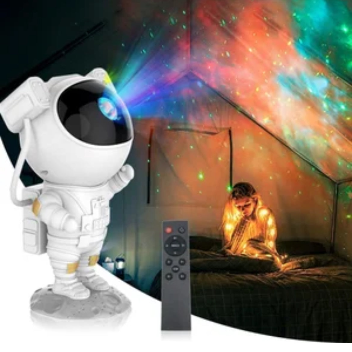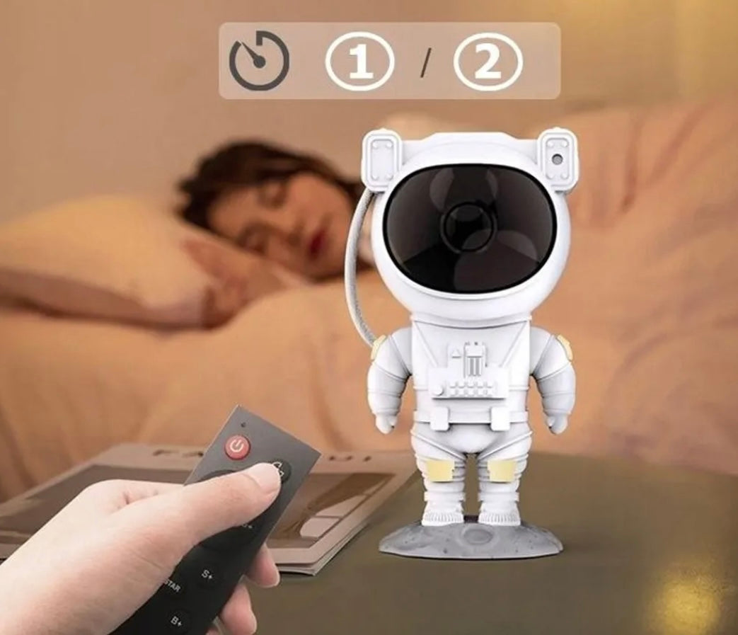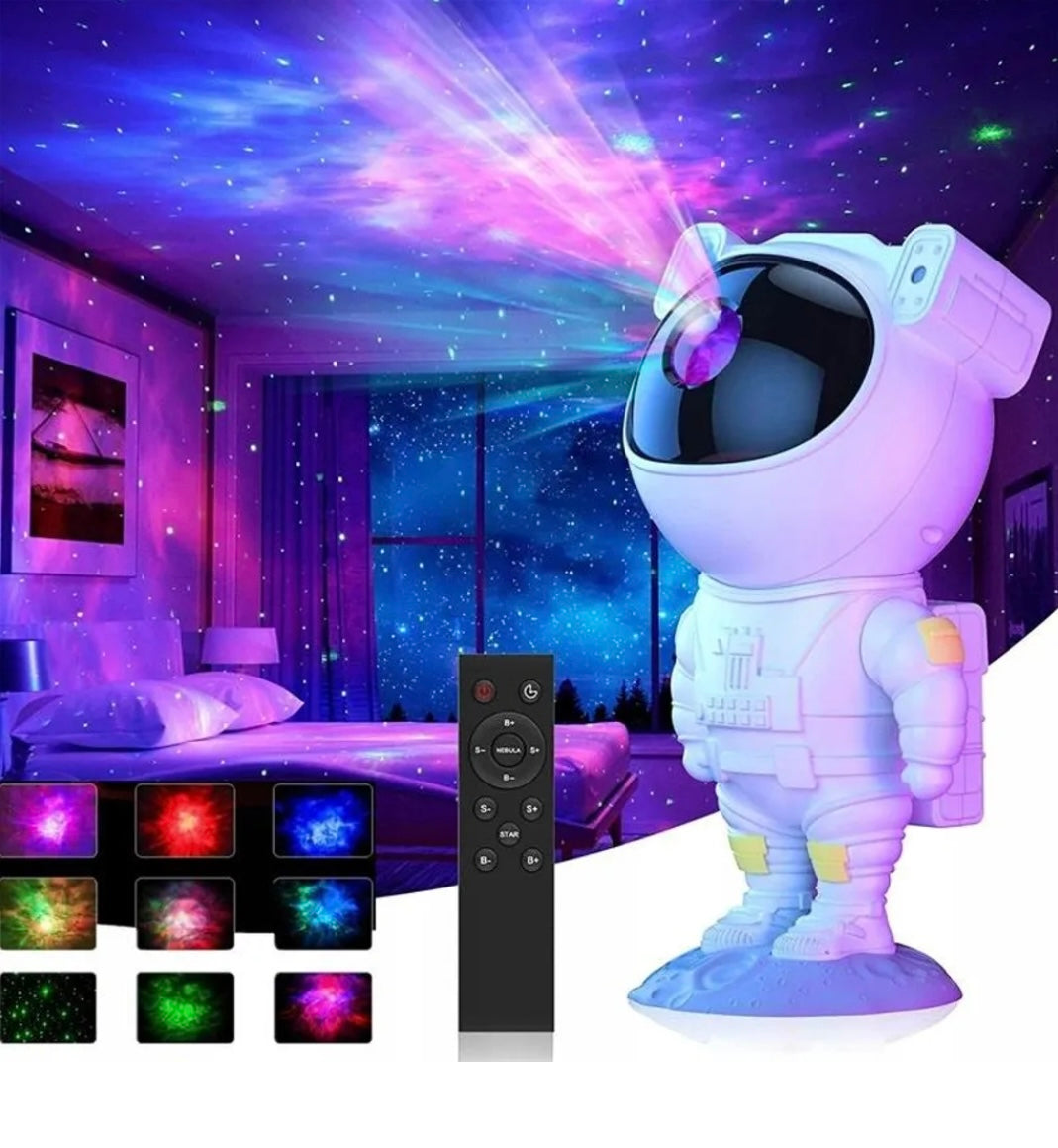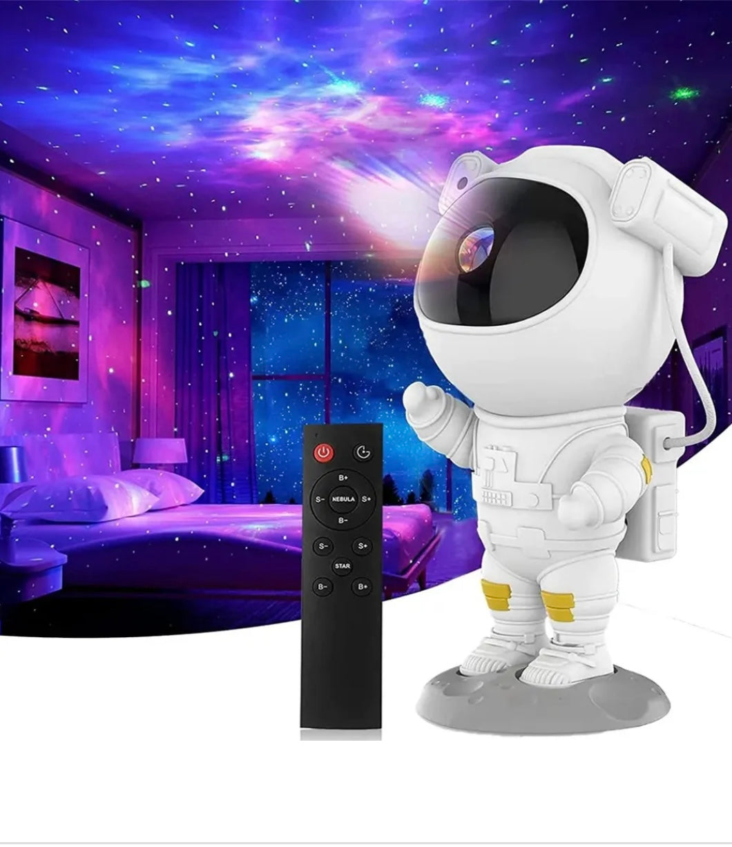 Descoperă proiectorul LED în formă de astronaut, ideal pentru a transforma orice spațiu într-o lume magică de stele și galaxii. Proiectorul nostru îți oferă o experiență captivantă cu ajutorul capului rotativ de 360°, care proiectează pe o suprafață extinsă, aducând un univers întreg în camera ta.