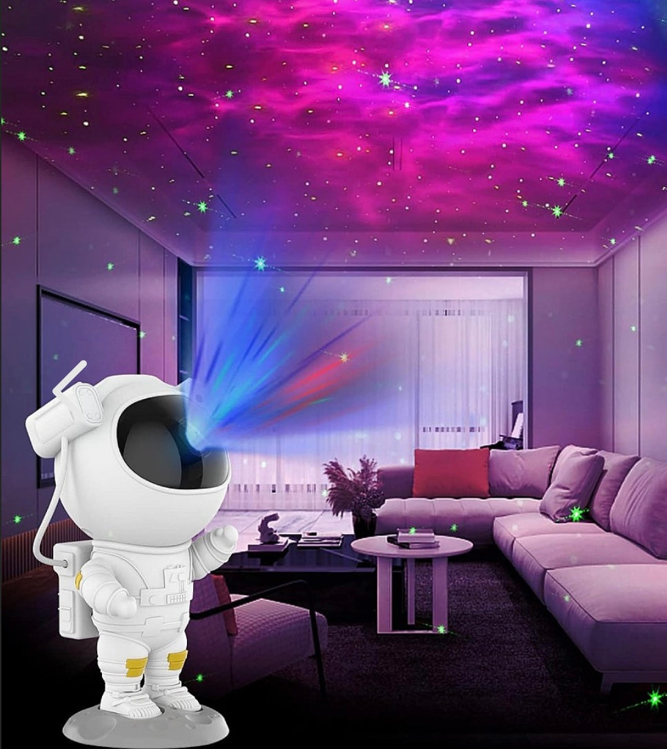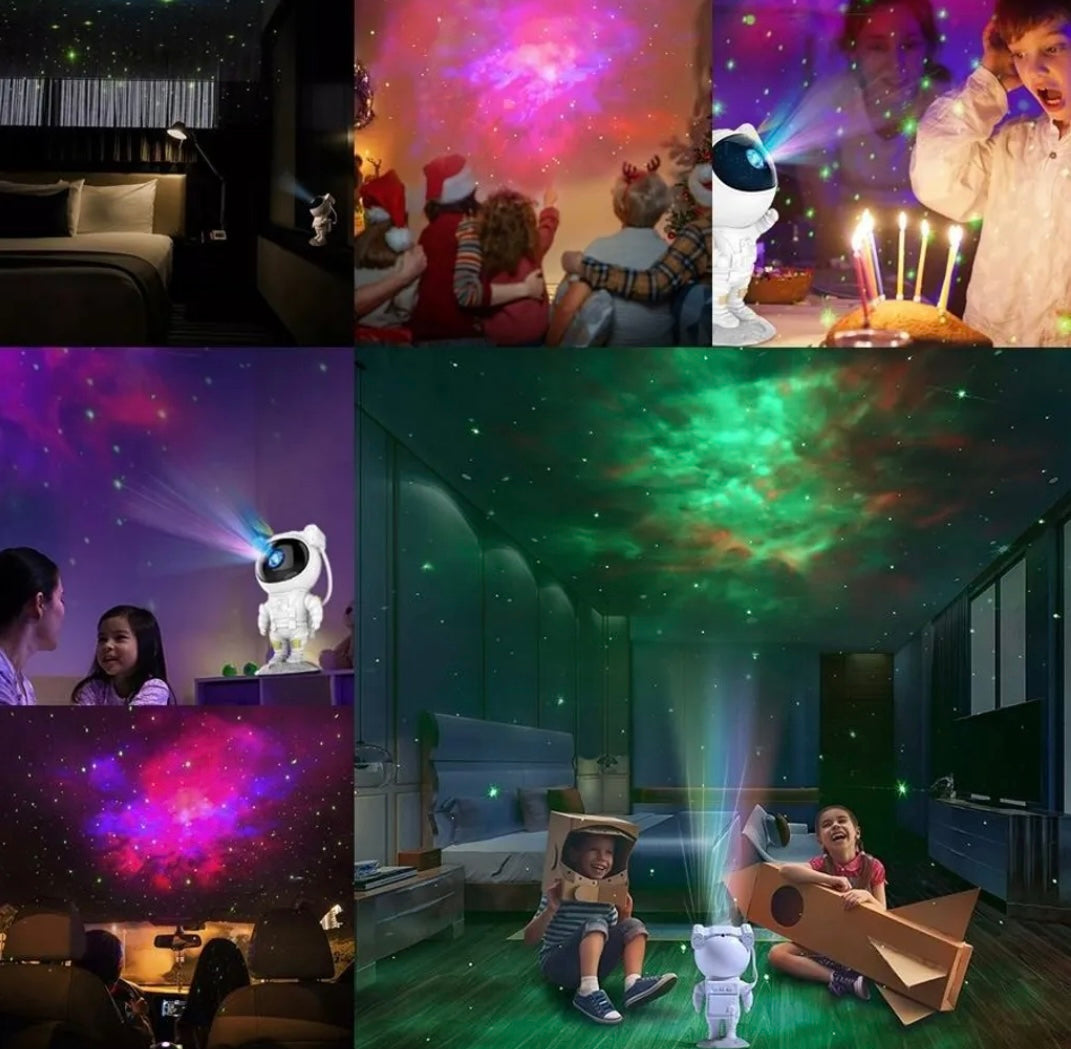 Proiectorul Astronaut schimbă instant atmosfera camerei, proiectând un cer galactic impresionant care te lasă fără cuvinte. Perfect pentru: